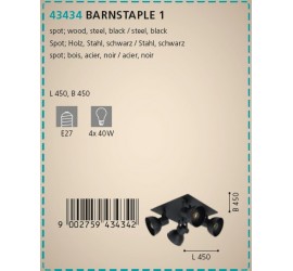 El plafón BARNSTAPLE 1 está realizado en metal negro con cuatro cabezales de luz negros móviles y completa el mobiliario moderno de estilo industrial. Con sus cabezales giratorios, la lámpara de techo es ideal en cualquier estancia, ya sea en la cocina, el salón, el dormitorio o el comedor. Las bombillas de filamentos que se muestran no están incluidas. La lámpara es apta para cualquier bombilla con casquillo E27.