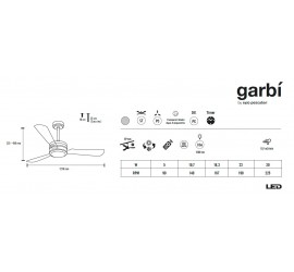 Ventilador led Garbi, luz 18W 1500lm dimable, ventilador 3 velocidades