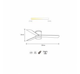 Ventilador led Zonda, luz 18w 1650lm dimable, ventilador 3 velocidades