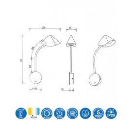 Goa es una colección de apliques modernos fabricados con aluminio que tienen el cabezal orientable. Esta luminaria de 39cm de alto es una opción perfecta para colocarla como lectura de cama. Se enciende y se apaga fácilmente con un interruptor incorporado.