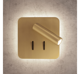 APLIQUE CAYMAN CUADRADO ORO LECTOR LED 3W+6W 3000K MANTRA 7854