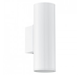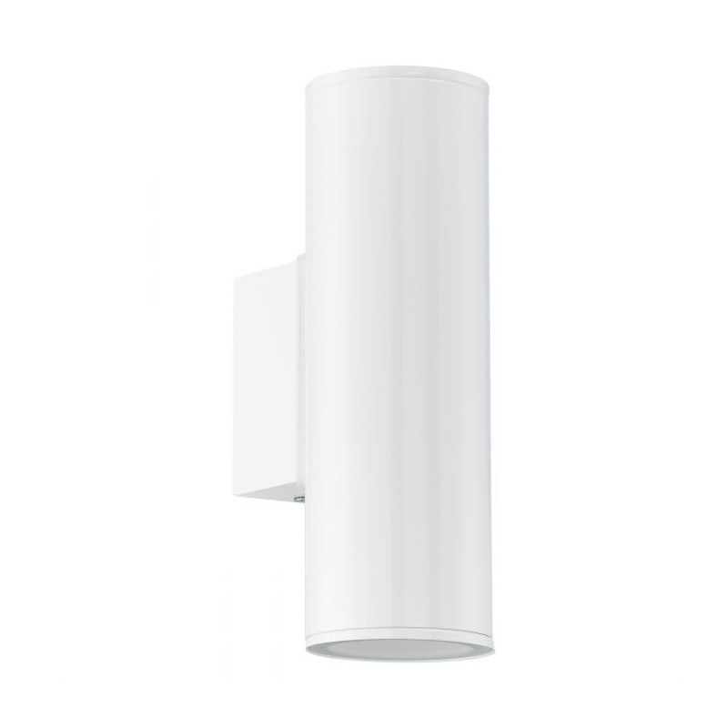 El aplique LED de pared para exteriores RIGA está fabricado en un cuerpo metálico blanco cilíndrico con cubiertas de vidrio transparente. Las bombillas LED GU10 suministradas emiten una agradable luz cálida. Gracias a las luces superiores e inferiores con un diseño moderno, el aplique de pared se adapta a casi cualquier zona exterior y ofrece una iluminación indirecta y elegante en las paredes de la casa. La lámpara exterior . Está fabricado a prueba de salpicaduras (IP44) y se puede utilizar en exteriores con seguridad.