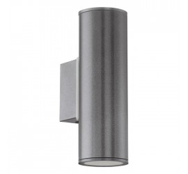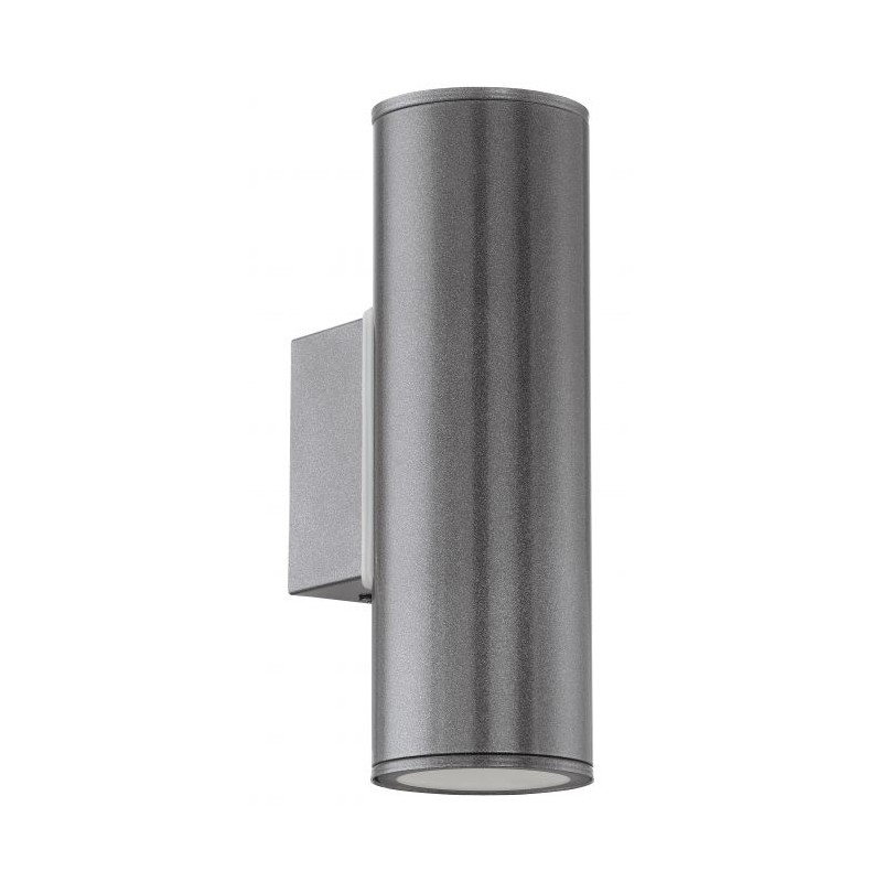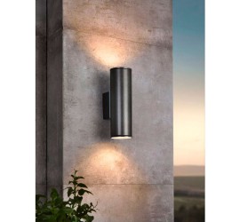 El aplique de exterior LED RIGA está fabricado con un cuerpo cilíndrico de metal en color antracita con cubiertas de cristal transparente. Las bombillas LED GU10 suministradas emiten una agradable luz cálida. Gracias a las luces superiores e inferiores con un diseño moderno, el aplique de pared se adapta a casi cualquier zona exterior y ofrece una iluminación indirecta y elegante en las paredes de la casa. La lámpara exterior . Está fabricado a prueba de salpicaduras (IP44) y se puede utilizar en exteriores con seguridad.