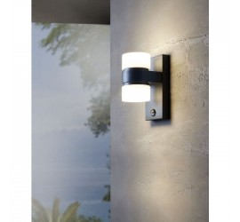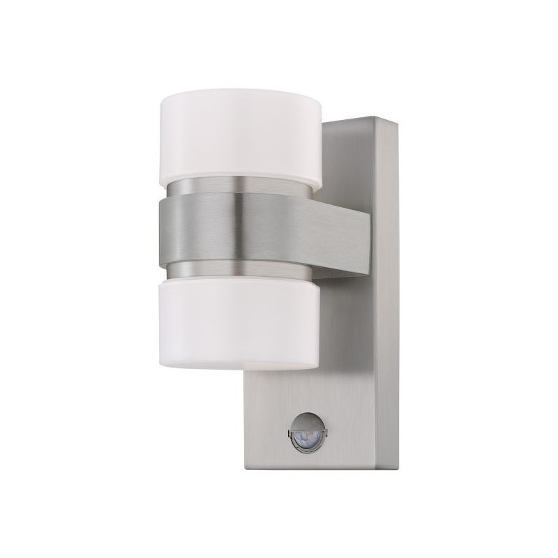 El aplique de exterior LED ATOLLARI está realizado a partir de un soporte de pared rectangular de aluminio fundido en acero inoxidable. Esto combina con dos elementos de iluminación cilíndricos blancos hechos de plástico. Los LED integrados emiten una agradable luz blanca cálida. El aplique de pared de exterior también está equipado con un sensor de movimiento y enciende la luz automáticamente, se iluminan las áreas con poca luz y disuade a los intrusos. La lámpara es adecuada para su uso en exteriores debido a su protección contra las salpicaduras (IP44). Gracias a las luces superiores e inferiores con un diseño moderno, el aplique de pared para exteriores se adapta a casi cualquier zona exterior y ofrece una iluminación indirecta y elegante en las paredes de la casa.