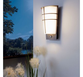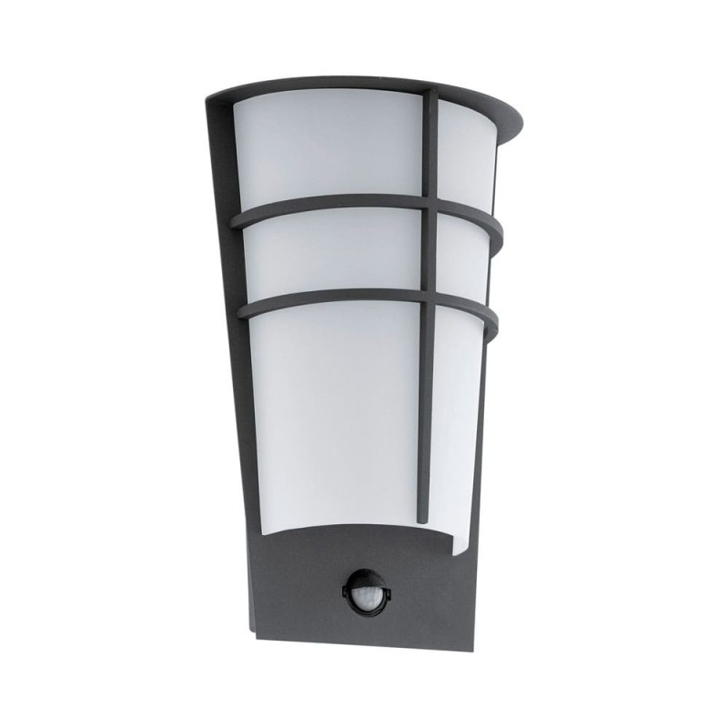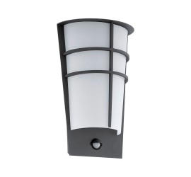 El aplique para exteriores LED BREGANZO 1 está formado por un cuerpo de metal galvanizado de color antracita cuyo marco exterior se curva suavemente alrededor de la pantalla de plástico blanco. La lámpara está equipada con un sensor de movimiento que enciende automáticamente la luz. Se pueden iluminar así las áreas de poca luz y disuadir a los intrusos. El sensor crepuscular integrado mide la luminosidad ambiental y solo enciende la luz cuando es realmente necesario. Los LED integrados emiten una agradable luz blanca cálida. Esta lámpara es a prueba de salpicaduras (IP44) y se puede utilizar en exteriores con total seguridad. Gracias al diseño atemporal, encaja en cualquier zona exterior moderna, es ideal para entradas, terrazas o balcones.