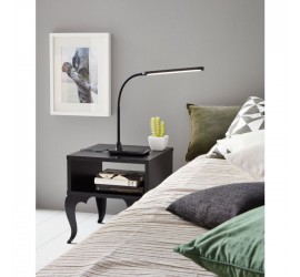 La lámpara de sobremesa LED LAROA está hecha de plástico negro con un cabezal móvil. Los LED integrados emiten una luz blanca neutra y pueden encenderse y apagarse fácilmente tocando el área designada «Touch me» en el cabezal de la lámpara y atenuarse en cuatro pasos. La lámpara de sobremesa minimalista se adapta a los estilos de decoración modernos y ofrece una iluminación óptima en el estudio y en todas las habitaciones donde se requiere una buena iluminación.