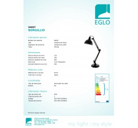 La lámpara de sobremesa BORGILLIO está fabricada en metal negro y tiene un cabezal móvil con un interior blanco. Las prácticas articulaciones en el cuerpo de la luminaria permiten ajustar la altura individualmente, de modo que se puede crear un área idealmente iluminada en la estancia con tan solo un movimiento. Se puede utilizar un interruptor en el cable para encenderla y apagarla cómodamente. La lámpara de sobremesa se adapta a la perfección en estilos de decoración modernos. La bombilla no está incluida. La lámpara es apta para cualquier bombilla con casquillo E27.