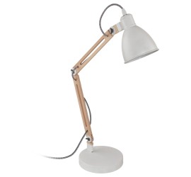 La lámpara de sobremesa TORONA 1 se compone de una base redonda de metal blanco y un cuerpo de madera de árbol de caucho en color natural y un cabezal giratorio hecho de metal blanco. Las prácticas articulaciones en el cuerpo de la luminaria permiten ajustar la altura individualmente, de modo que se puede crear un área idealmente iluminada en la estancia con tan solo un movimiento. Se puede utilizar un interruptor en el cable para encenderla y apagarla cómodamente. La lámpara de sobremesa se adapta a la perfección en tendencias de decoración modernas. La bombilla no está incluida. La lámpara es apta para cualquier bombilla con casquillo E14.