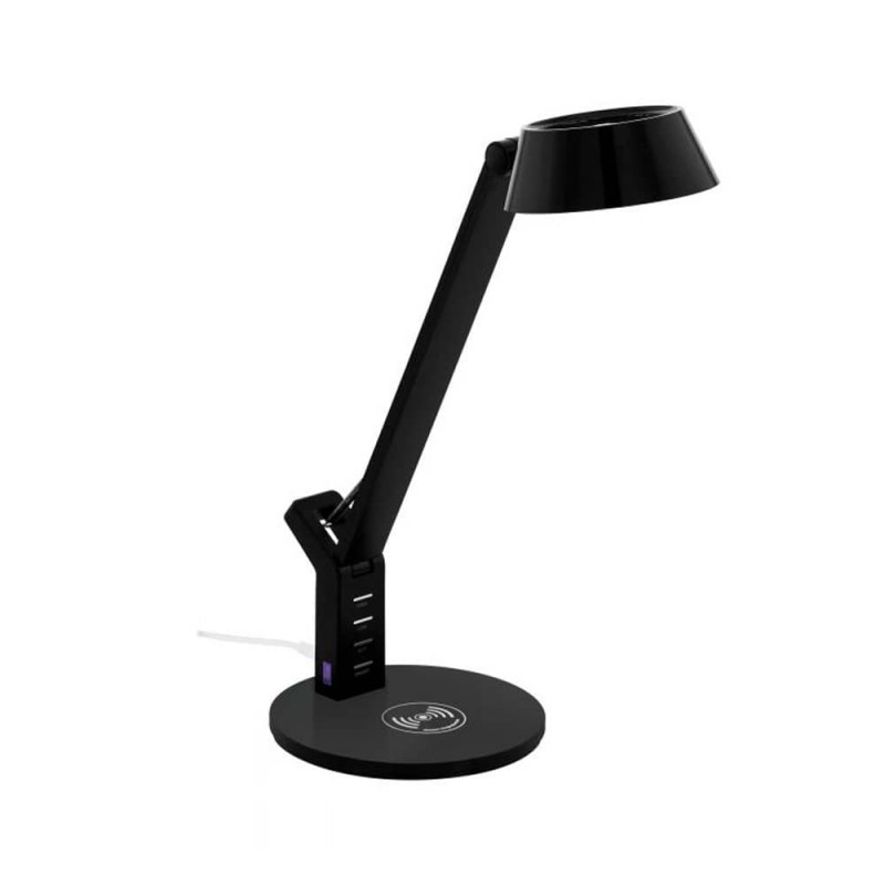 La lámpara de sobremesa LED CABALES está realizada en plástico negro y tiene un cabezal y brazo móviles. Los LED integrados emiten una luz agradable según sus deseos. Los interruptores en la base de la lámpara permiten encenderla y apagarla, atenuar la luz y cambiar la temperatura del color entre blanco cálido, blanco neutro y blanco frío. Especialmente práctico: su cargador QI integrado en la base de la lámpara que permite cargar su smartphone simplemente colocándolo en el área de carga designada. La lámpara de escritorio atemporal se adapta perfectamente a los estilos modernos y proporciona una iluminación óptima en cualquier estancia, ya sea en el dormitorio, en la mesita de noche, en el salón o en el escritorio del estudio.