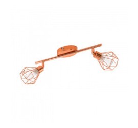 La lámpara de techo LED ZAPATA está compuesta por un cuerpo metálico lineal en color cobre con dos cabezales móviles en forma de rombo fabricados en alambre. Cada uno de ellos cuenta con un elemento interno de vidrio satinado en blanco. Las pantallas crean un fascinante juego de luces y sombras en cuanto se encienden. La lámpara de techo se adapta a la perfección a los estilos de decoración modernos y, gracias a los cabezales orientables, le ofrece la oportunidad de establecer acentos de luz individuales en la estancia, ya sea en la cocina, el salón, el dormitorio o el pasillo. Las bombillas LED G9 están incluidas y emiten una agradable luz blanca cálida.