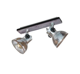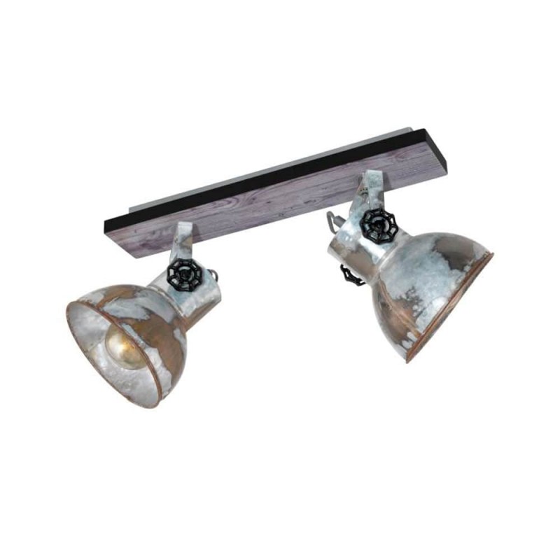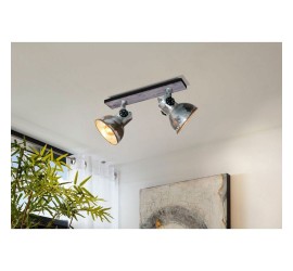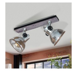 El plafón BARNSTAPLE está formado por un cuerpo de metal rectangular con un elemento decorativo de madera marrón y una banda de metal circundante en negro. Los dos cabezales móviles de metal con aspecto galvanizado usado y los tornillos de bloqueo en negro en los laterales completan el diseño rústico de la lámpara. El foco de techo encaja a la perfección en la tendencia industrial. El cabezal giratorio permite establecer puntos de iluminación individuales en la estancia, ya sea en la cocina, el salón, el dormitorio o el pasillo. Las bombillas de filamentos que se muestran no están incluidas. La lámpara es apta para cualquier bombilla con casquillo E27.