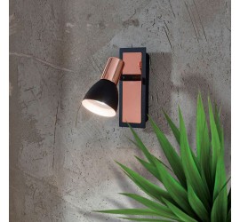 El aplique de pared LED BARNHAM está fabricado con un cuerpo metálico negro en líneas rectas, que se combinó con una placa decorativa de color cobre. El extremo cobrizo del cabezal negro completa hábilmente el diseño. Además, el interior de la pantalla móvil es de color cobre y dirige la luz blanca cálida hacia la estancia. El aplique de pared de diseño moderno proporciona una iluminación óptima, por ejemplo en la cocina, el salón, el dormitorio o el pasillo. La bombilla LED GU10 está incluida.