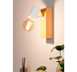 El aplique TOWNSHEND 3 está formado por un cuerpo fabricado en madera y un cabezal móvil de metal blanco. El aplique de pared con la emocionante mezcla de materiales de madera de pino y metal se integra a la perfección en muebles modernos de estilo escandinavo y vintage. El cabezal giratorio permite establecer puntos de iluminación individuales en la estancia, ya sea en el salón, el dormitorio, el pasillo o el comedor. La bombilla Milky que se muestra no está incluida. La lámpara es apta para cualquier bombilla con casquillo E27.