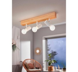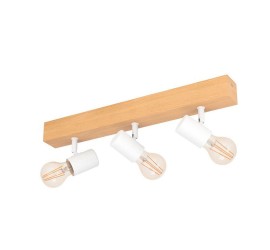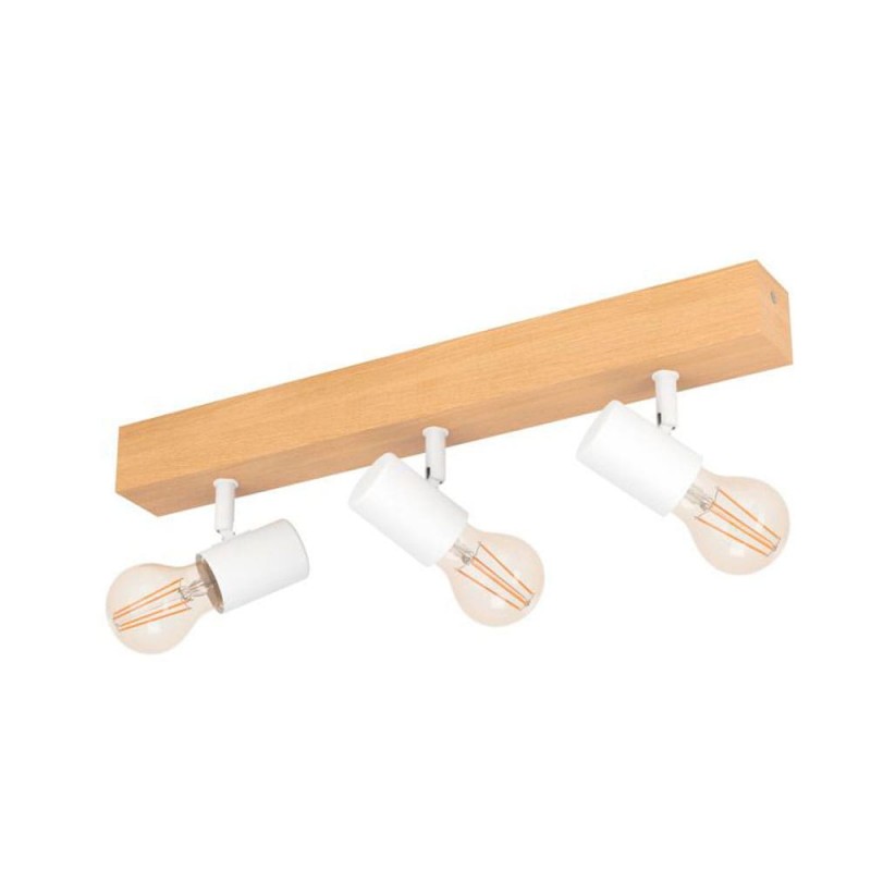 La lámpara de techo TOWNSHEND 3 está formada por un cuerpo de luz de madera con tres cabezales móviles de metal blanco y completa un mobiliario moderno de estilo escandinavo y vintage. La lámpara de techo en la emocionante mezcla de materiales de madera de pino y metal es ideal para cualquier estancia gracias a sus cabezales giratorios, ya sea en la cocina, el salón, el dormitorio, el pasillo o el comedor. Las bombillas Milky no están incluidas. La lámpara es apta para cualquier bombilla con casquillo E27.