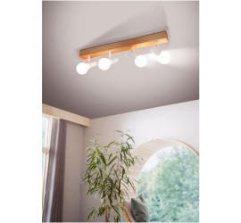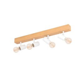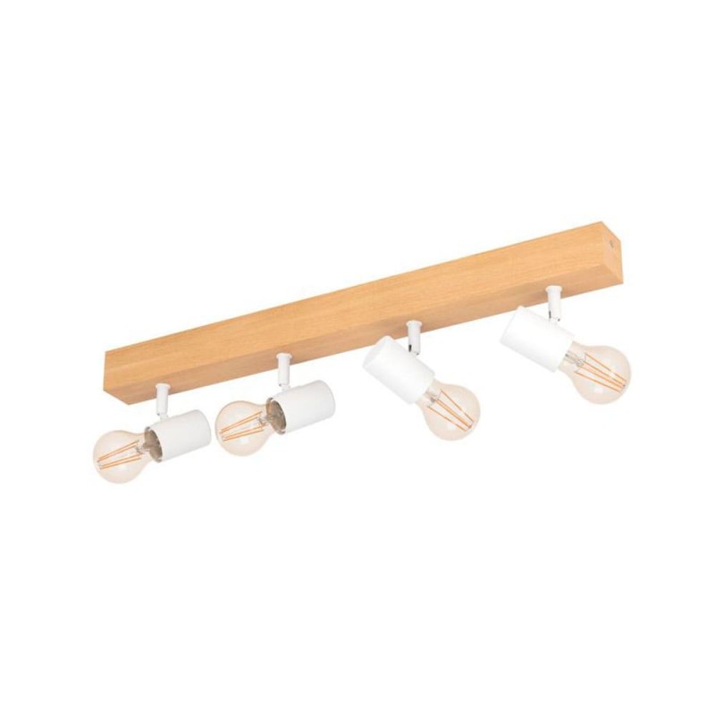 La lámpara de techo TOWNSHEND 3 está formada por un cuerpo de luz de madera con cuatro cabezales móviles de metal blanco y completa un mobiliario moderno de estilo escandinavo y vintage. La lámpara de techo en la emocionante mezcla de materiales de madera de pino y metal es ideal para cualquier estancia gracias a sus cabezales giratorios, ya sea en la cocina, el salón, el dormitorio, el pasillo o el comedor. Las bombillas Milky no están incluidas. La lámpara es apta para cualquier bombilla con casquillo E27.
