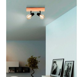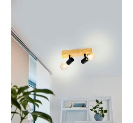 La lámpara de techo TOWNSHEND 3 se compone de un cuerpo de madera con dos cabezales móviles de metal negro y completa las tendencias de decoración de estilo vintage e industrial. La moderna lámpara de techo en la emocionante mezcla de materiales de madera de pino y metal es ideal para cualquier estancia gracias a sus cabezales giratorios, ya sea en la cocina, el salón, el dormitorio, el pasillo o el comedor. Las bombillas de filamentos que se muestran no están incluidas. La lámpara es apta para cualquier bombilla con casquillo E27.