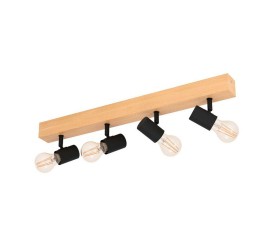 La lámpara de techo TOWNSHEND 3 se compone de un cuerpo de madera con cuatro cabezales móviles de metal negro y completa las tendencias de decoración de estilo vintage e industrial. La moderna lámpara de techo en la emocionante mezcla de materiales de madera de pino y metal es ideal para cualquier estancia gracias a sus cabezales giratorios, ya sea en la cocina, el salón, el dormitorio, el pasillo o el comedor. Las bombillas de filamentos que se muestran no están incluidas. La lámpara es apta para cualquier bombilla con casquillo E27.