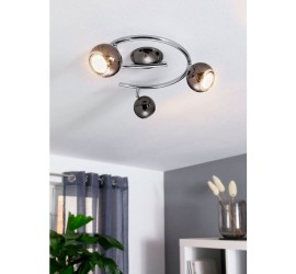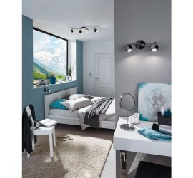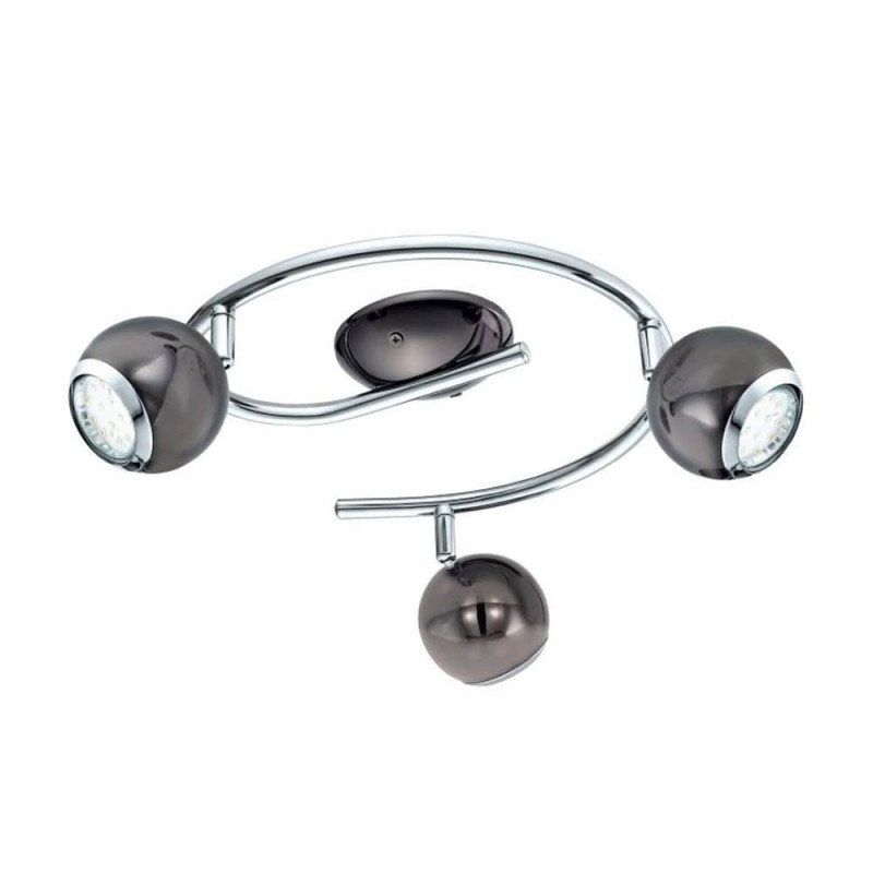 El spot LED de techo BIMEDA está realizado en metal (níquel) negro con detalles cromados. Los tres cabezales esféricos móviles sujetos al brazo de la lámpara curvado proporcionan una luz blanca cálida agradable gracias a las bombillas GU10 incluidas y ofrecen una iluminación puntual en la estancia. El spot de techo de diseño moderno se integra a la perfección con diferentes estilos, ya sea en la cocina, el salón, el dormitorio o el pasillo.