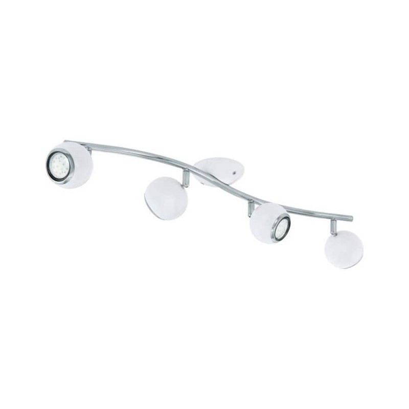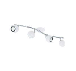 El spot LED de techo BIMEDA está realizado en metal pintado de blanco con detalles cromados. Los cuatro cabezales esféricos móviles sujetos al brazo de la lámpara ligeramente curvado proporcionan una luz blanca cálida agradable gracias a las bombillas GU10 incluidas y ofrecen una iluminación puntual en la estancia. El spot de techo de diseño moderno se integra a la perfección con diferentes estilos, ya sea en la cocina, el salón, el dormitorio o el pasillo.