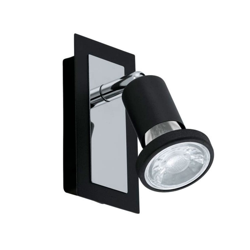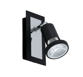 El foco LED de pared y techo SARRIA está compuesto por un cuerpo rectangular de metal negro y un cabezal móvil de metal negro. La lámpara se combina con elementos metálicos en color cromo que completan a la perfección el diseño minimalista. Se puede utilizar un interruptor en los cabezales para encender y apagar la lámpara cómodamente. El cabezal giratorio permite establecer puntos de iluminación individuales en la estancia, ya sea en la cocina, el salón, el dormitorio o el pasillo. La bombilla LED GU10 suministrada emite una luz cálida y agradable.