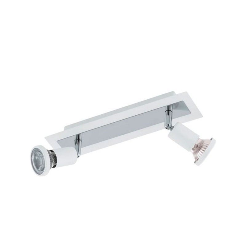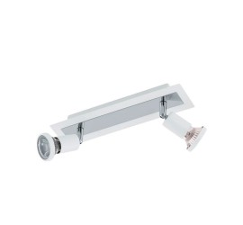 La lámpara LED de techo SARRIA está compuesta por un cuerpo rectangular de metal blanco y dos cabezales móviles de metal blanco. La lámpara de techo se combina con elementos metálicos en color cromo que completan a la perfección el diseño minimalista. Los cabezales giratorios permiten establecer puntos de iluminación en la estancia, ya sea en la cocina, el salón, el dormitorio o el pasillo. Las bombillas LED GU10 suministradas emiten una agradable luz cálida.