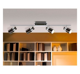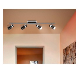 La lámpara de techo LED DAVIDA está fabricada con un cuerpo de líneas rectas metálico en color níquel-nero y cromo combinado con cuatro cabezales móviles redondos. El spot de techo encaja perfectamente con el diseño moderno y le brinda la opción, gracias a los cabezales giratorios, de establecer puntos de iluminación individuales en la estancia, ya sea en la cocina, el salón, el dormitorio o el pasillo. Las bombillas LED GU10 están incluidas y emiten una agradable luz blanca cálida.