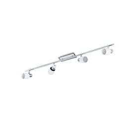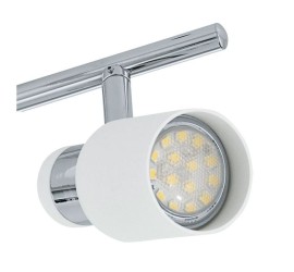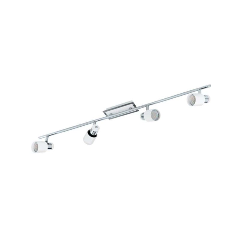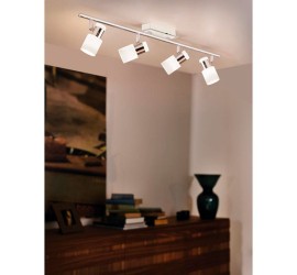 La lámpara de techo LED DAVIDA está fabricada con un cuerpo metálico en color blanco y cromo de líneas rectas, combinado con cuatro cabezal móviles redondos. El spot de techo encaja perfectamente con el diseño moderno y le brinda la opción, gracias a los cabezales giratorios, de establecer puntos de iluminación individuales en la estancia, ya sea en la cocina, el salón, el dormitorio o el pasillo. Las bombillas LED GU10 están incluidas y emiten una agradable luz blanca cálida.