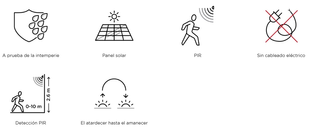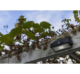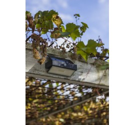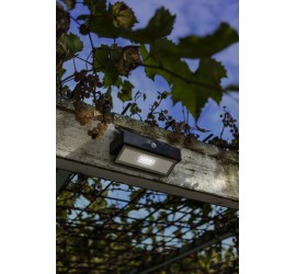 Aplique solar muy compacto. Su reducido tamaño y peso garantizan un fácil montaje en las superficies más pequeñas. Con sensor y panel solar inclinado para una mejor captación de la luz solar.