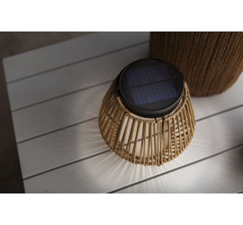 La COPPA La lámpara solar portátil es una opción de iluminación elegante y ecológica, con un elegante acabado negro complementado con detalles de ratán tejido. Esta lámpara inalámbrica que funciona con energía solar combina la estética con la portabilidad, lo que la convierte en una opción de iluminación elegante y versátil para sus áreas al aire libre.