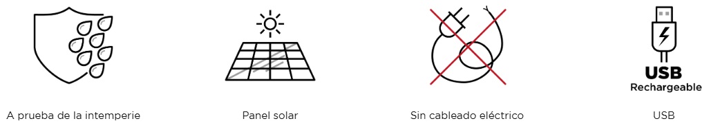 SOLAR: Panel policristalino · 1W · Batería 1x Li-MnO2 3V 1500mAh