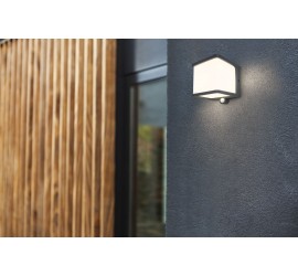 El aplique solar DOBLO extrae su energía del sol y, por tanto, no genera gastos de electricidad. Su elegante diseño irradia potentes rayos de luz blanca que iluminan la pared. Una característica adicional de este nuevo diseño es el interruptor de atenuación.