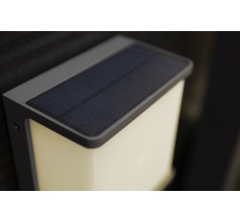 El aplique solar DOBLO extrae su energía del sol y, por tanto, no genera gastos de electricidad. Su moderno diseño irradia potentes rayos de luz blanca que iluminan la pared. Una característica adicional de este nuevo diseño es el interruptor de atenuación.