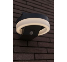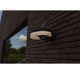 La luz LED solar de pared redonda RUNDA, disponible en gris oscuro, cuenta con un panel solar ajustable y un sensor PIR para una mayor funcionalidad. Este diseño versátil también se ofrece como bolardo, lo que lo hace adecuado para una variedad de necesidades de iluminación exterior.