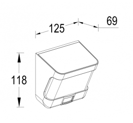 DIMENSIONES: Ancho 118 mm · Longitud 125 mm · Alto 69 mm