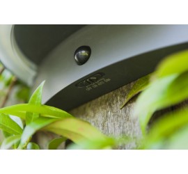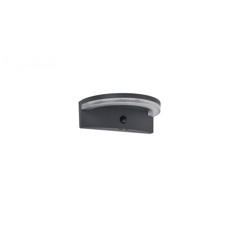 La luz de pared LED solar VYZOR, con acabado en gris oscuro, tiene una forma semicircular contemporánea e incluye un sensor PIR. Este diseño proporciona una iluminación eficaz activada por movimiento, ideal para la seguridad y el ambiente en exteriores.