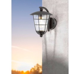 El aplique de pared de exterior PULFERO con diseño de farol está fabricado con un cuerpo de metal galvanizado en color negro y unos cristales de plástico transparente. La lámpara exterior es a prueba de salpicaduras (IP44) y se puede utilizar en exteriores con seguridad. El estilo clásico completa perfectamente sus áreas exteriores. La bombilla de filamentos que se muestra no está incluida. La lámpara es apta para cualquier bombilla con casquillo E27.